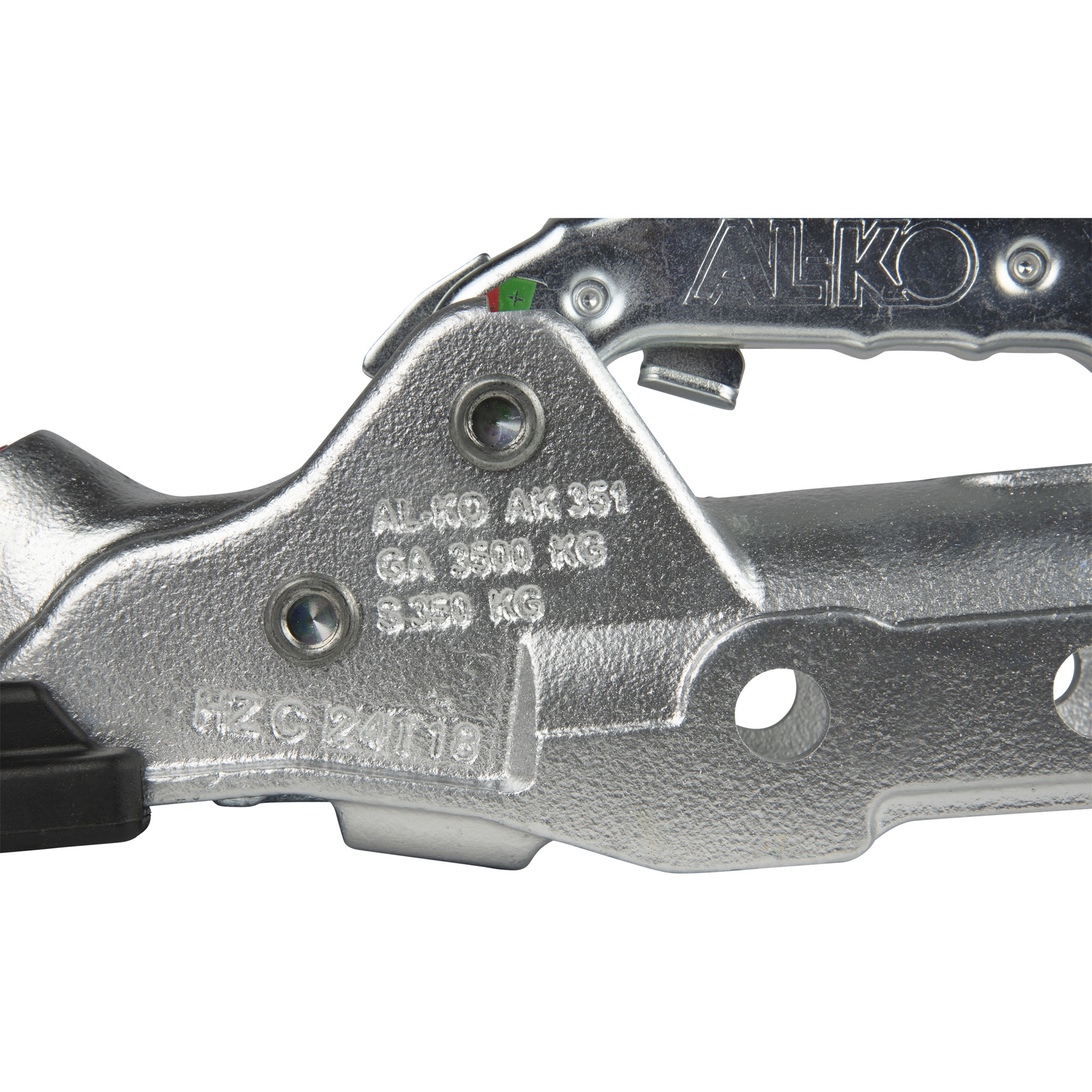 Kugelkupplung AL-KO Profi Typ AK 351, mit Soft-Dock + Safety Kit Zul. Gesamt-Gewicht 3500 kg Zul. Stützlast 350 kg Zugstange-Ø 60 mm Bohrung horizontal Ø 16,2 mm Abstand Bohrungen 54 mm