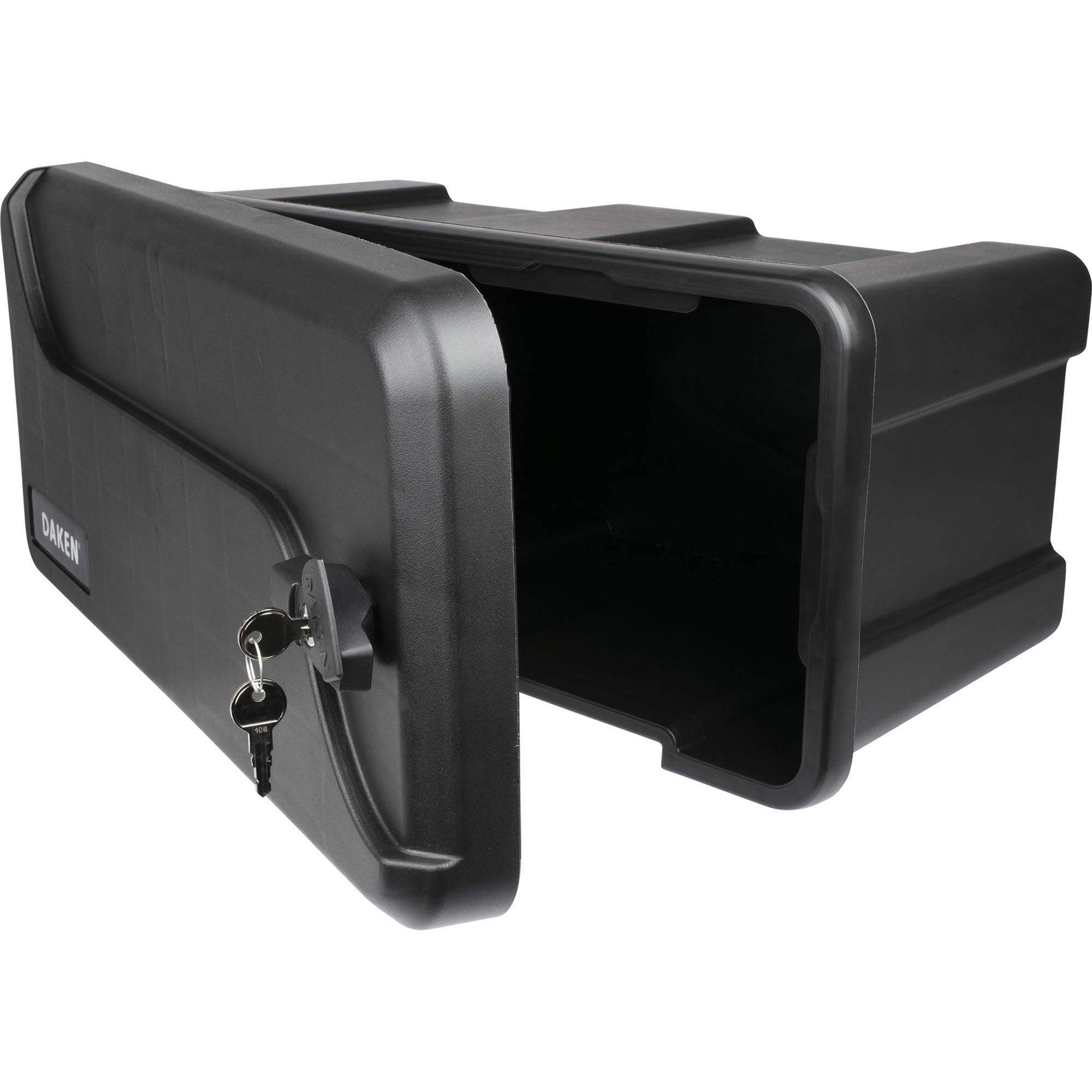 Staubox Typ Blackit 1 ohne Halterung Breite 550 mm Tiefe 295 mm Höhe 250 mm Kapazität 23 l Material Polypropylen Farbe schwarz mit klappbarem Deckel Scharniere an der kurzen Seite Verschluss mit Schließzylinder inkl. 2 Schlüssel UV-stabil witterungs- und temperaturbeständig spritzwasserdicht